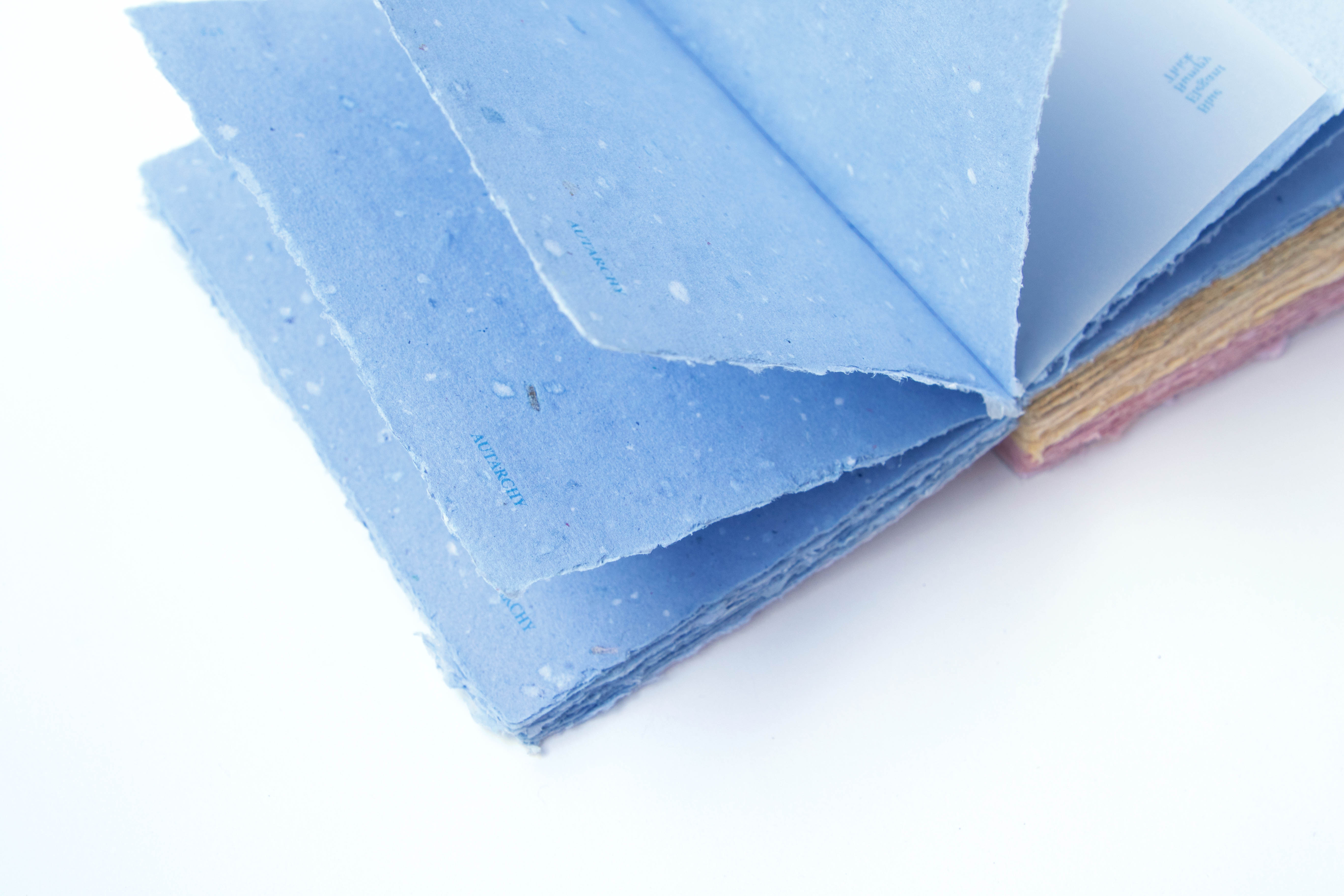 The final output is a 224 pages book with 16 different kinds of paper. Each paper has a unique character using various smells, colors, textures, and thicknesses. The content is the paper itself. I choose to put all of the contents in the page header to give the audience a space to feel the paper without distraction.